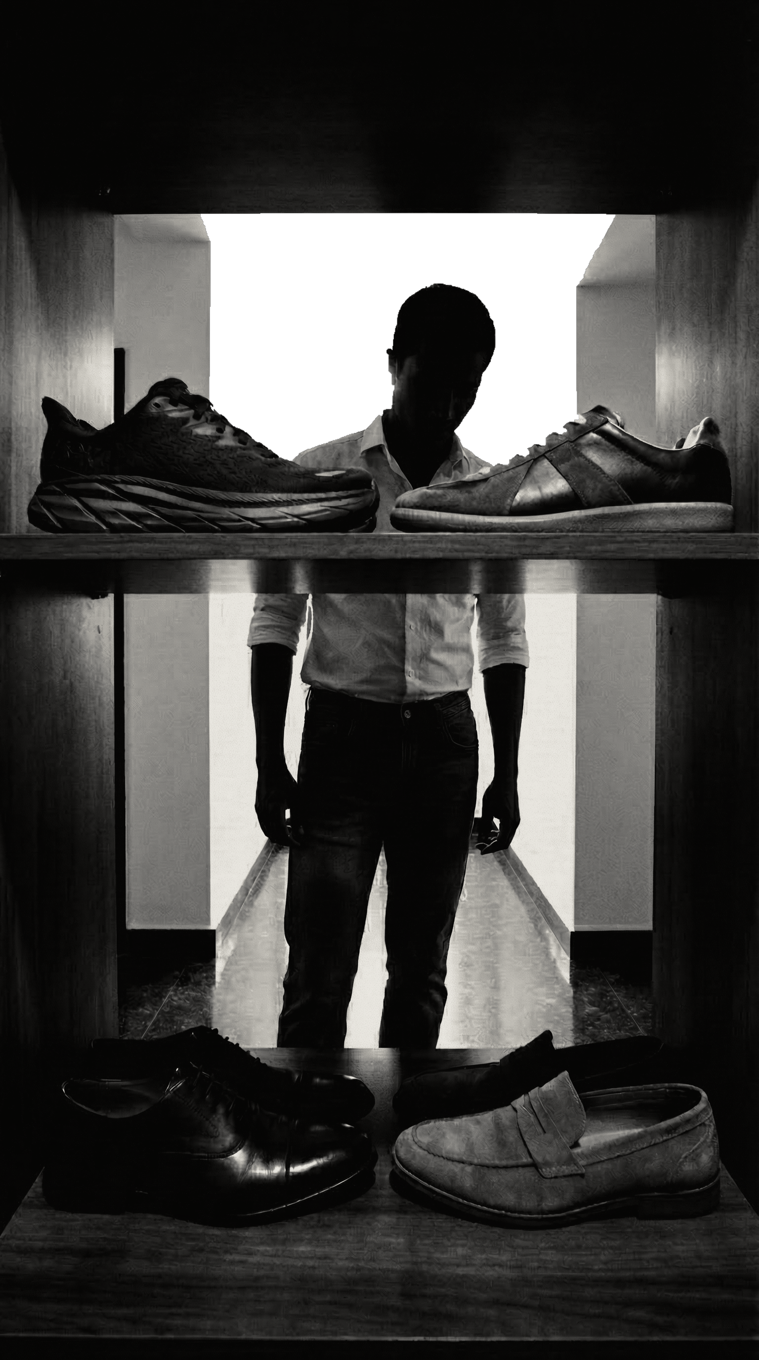 You wear the shoes everyone in your circle wears. They're good shoes and tell someone else's story.